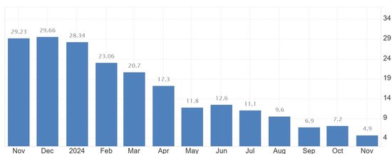 更难能慎重的是,以往此类角落阛阓的大涨,时常与汇率大幅贬值、通胀暴增筹划,但巴基斯坦的情况却在大大好转。巴基斯坦卢比是本年为数未几较好意思元增值的货币,同期该国的通胀年率也从岁首接近30%下跌至11月的4.9%。